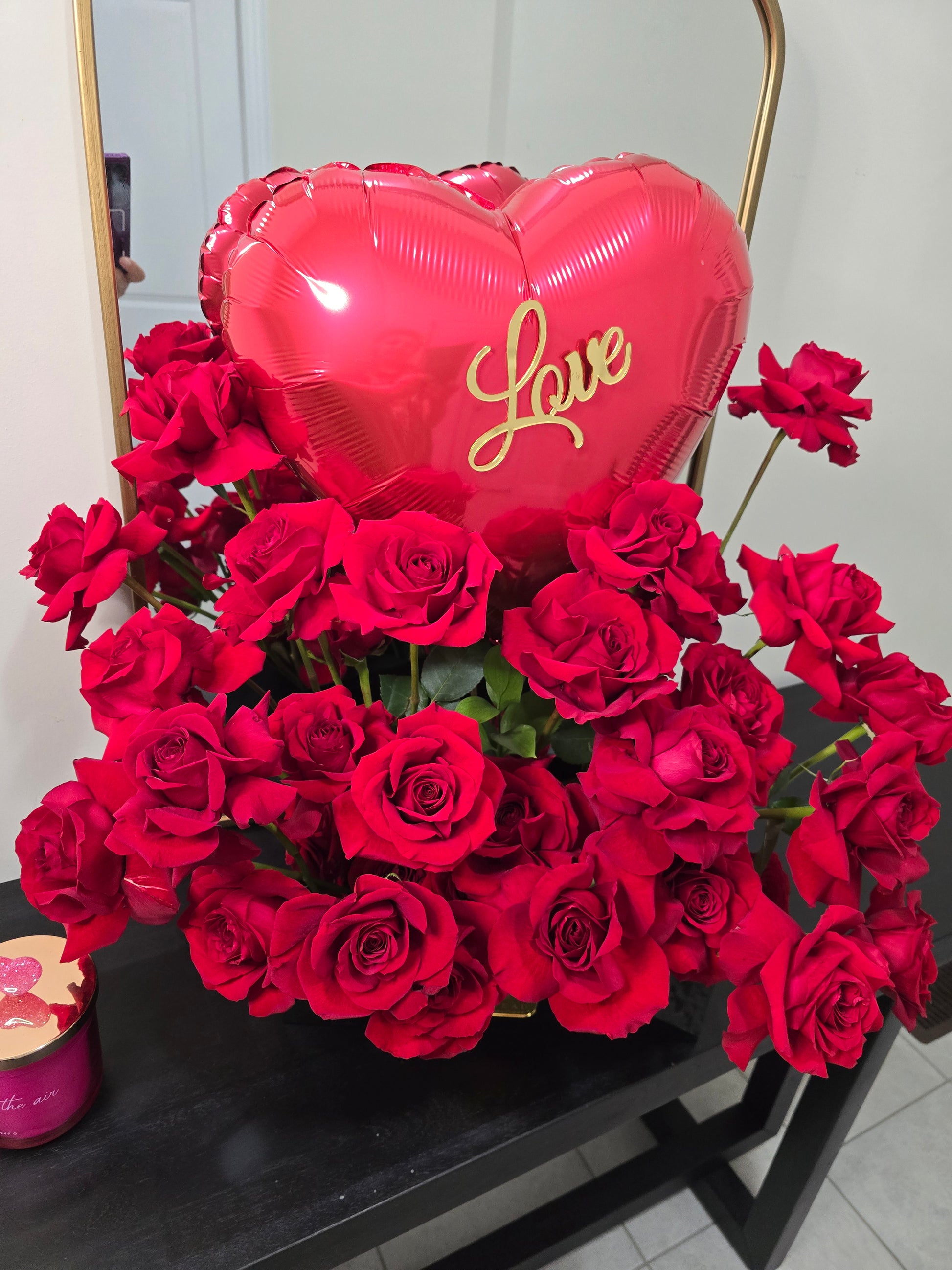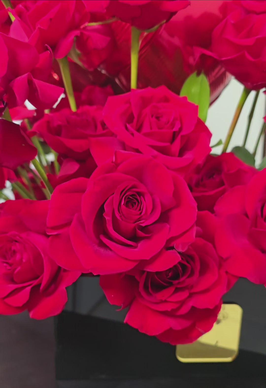 Indulge in the exquisite beauty of our timeless "Grandiose Standing Rose Affair" arrangement, presented in its elegant Grandiose Black Acrylic box. This stunning arrangement of 36 Stems red roses will transform any setting into a scene of refined elegance, captivating all who behold it. It is the perfect gift for someone with discerning taste, offering a luxurious floral experience.