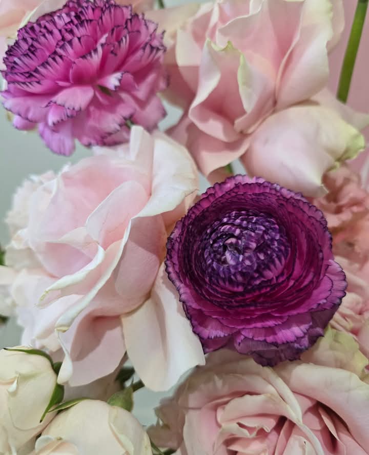 Experience the luxury of fresh flowers with our Roses & Ranunculus , Peony, Spray Roses, Sweet Pea Heart Shaped Mix Flower Bouquet In A Box. This exquisite arrangement features a stunning combination of pink, peach, and white ranunculus, complemented by elegant pink and peach roses, and fragrant stock flowers. The heart-shaped Box is beautifully adorned with pearl beads, adding a touch of sophistication and charm to this already gorgeous arrangement.