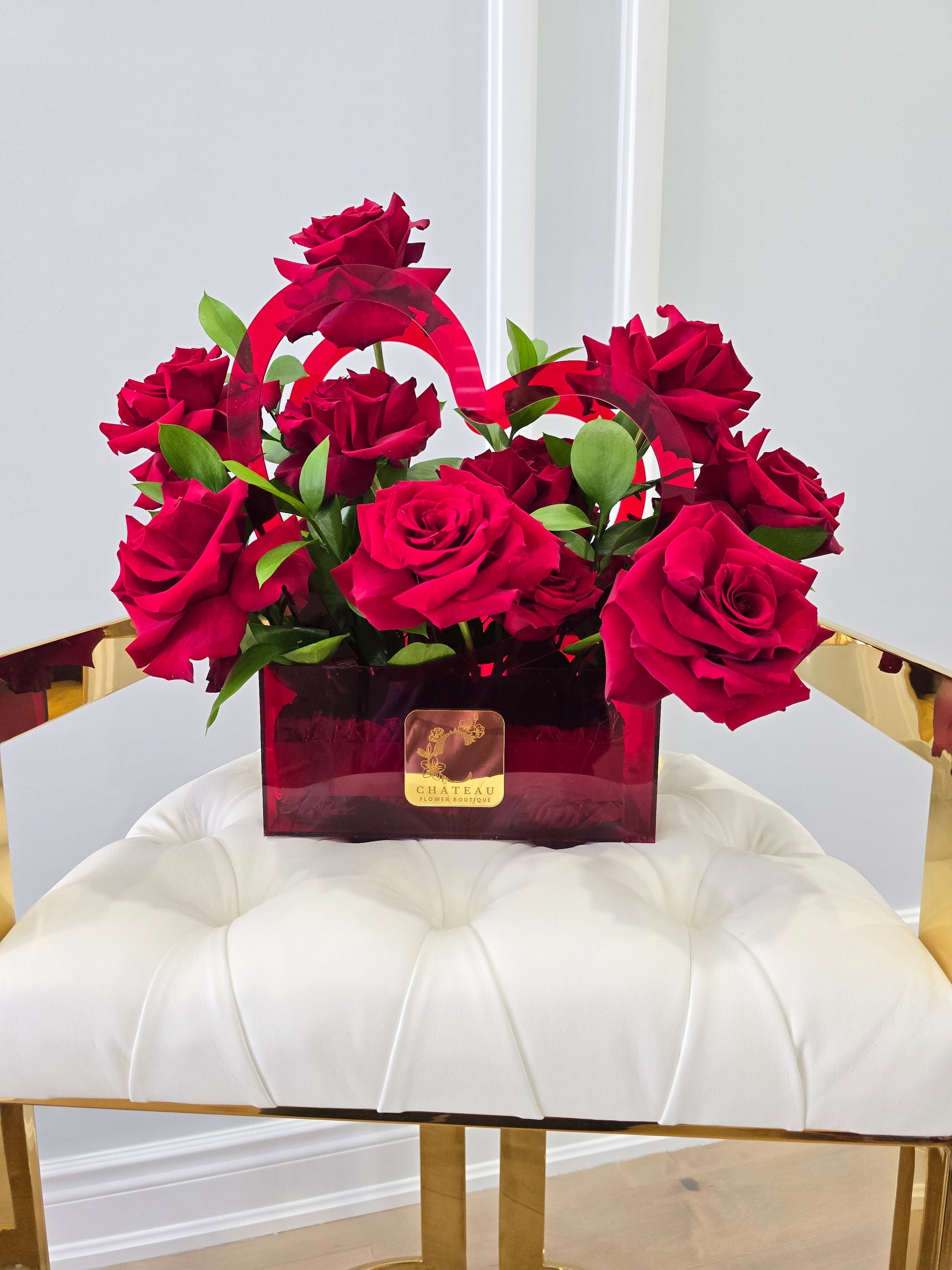 Capture the essence of elegance, romance and passion with this stunning box of roses with a heart shape custom acrylic box carefully put together with effort and detail one by one to create perfection. Fresh 24 Stems of Signature Red Ecuadorian Roses.